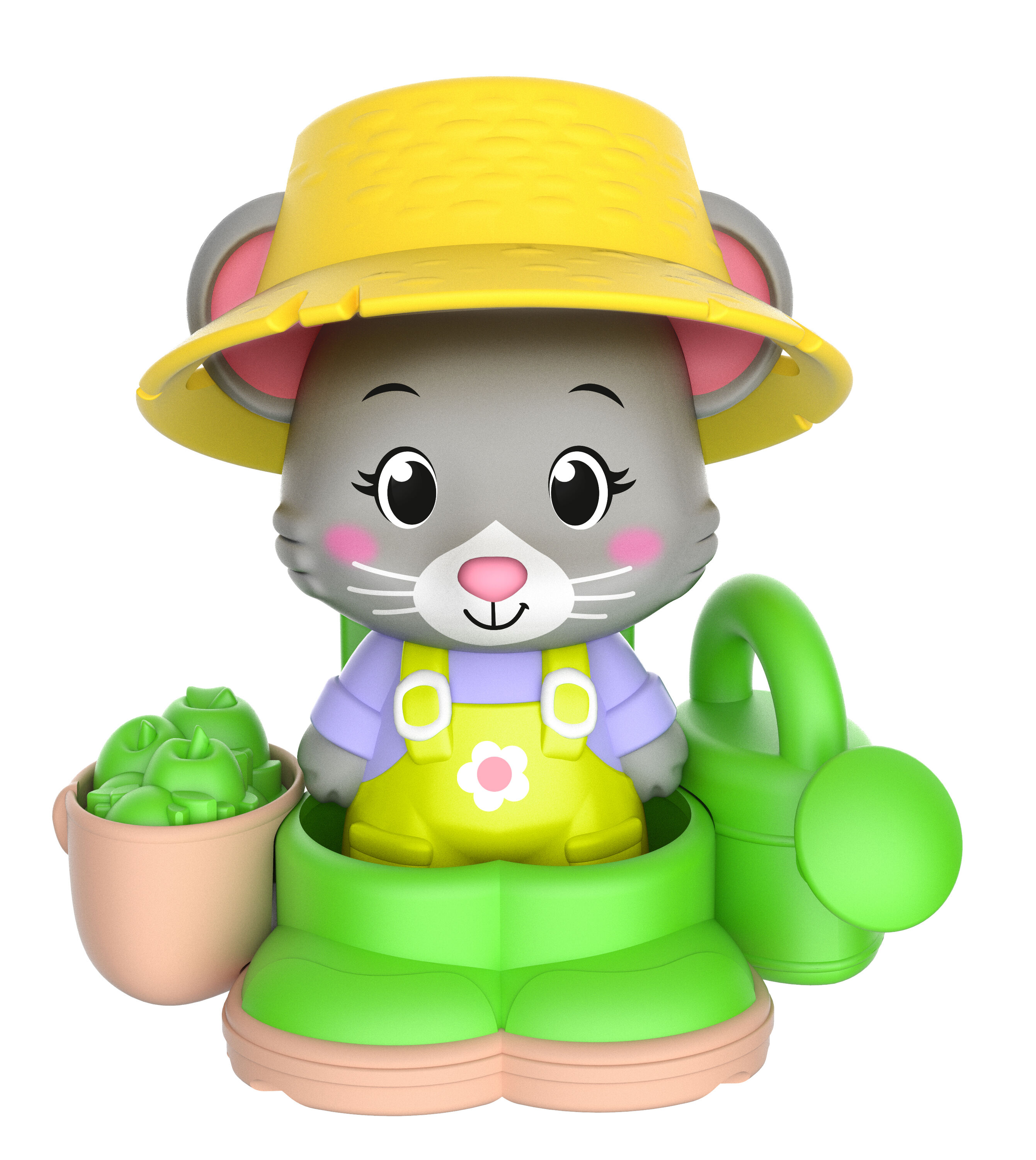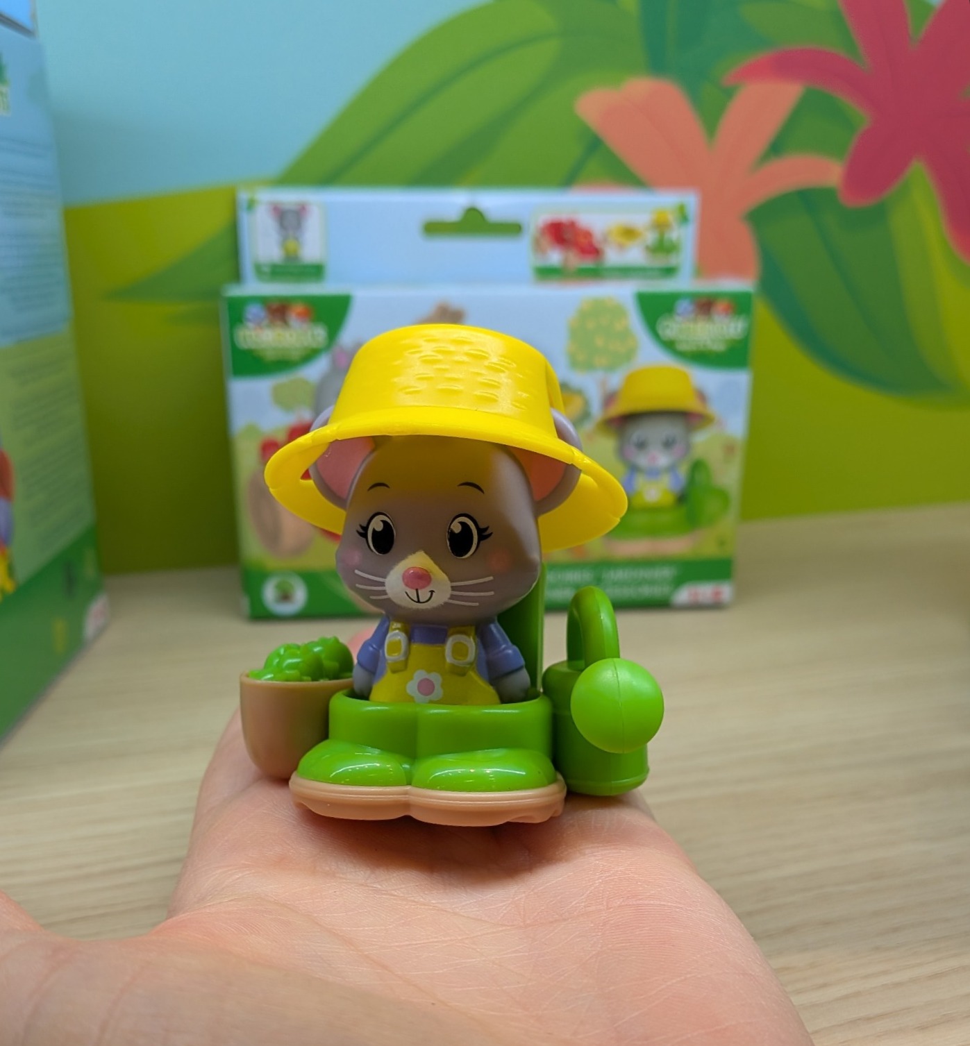 Zestaw małego ogrodnika: o traktor, taczkę, strój ogrodnika oraz jedno zwierzątko myszka Brie. Zabawka dla dzieci w wieku 18 miesięcy +.
